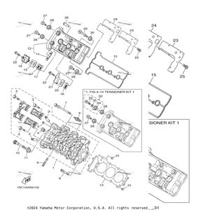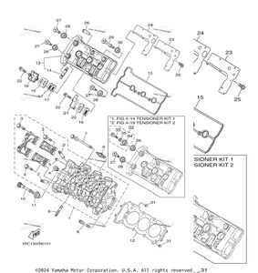 Yamaha 2015 FJ09 | Cylinder Head Схема Cylinder Head | 29 | 99999-04254-00 | Tensioner Kit 1 *NOTE 1, SEE TECH BULLETIN M2016-004A | ![]() | |